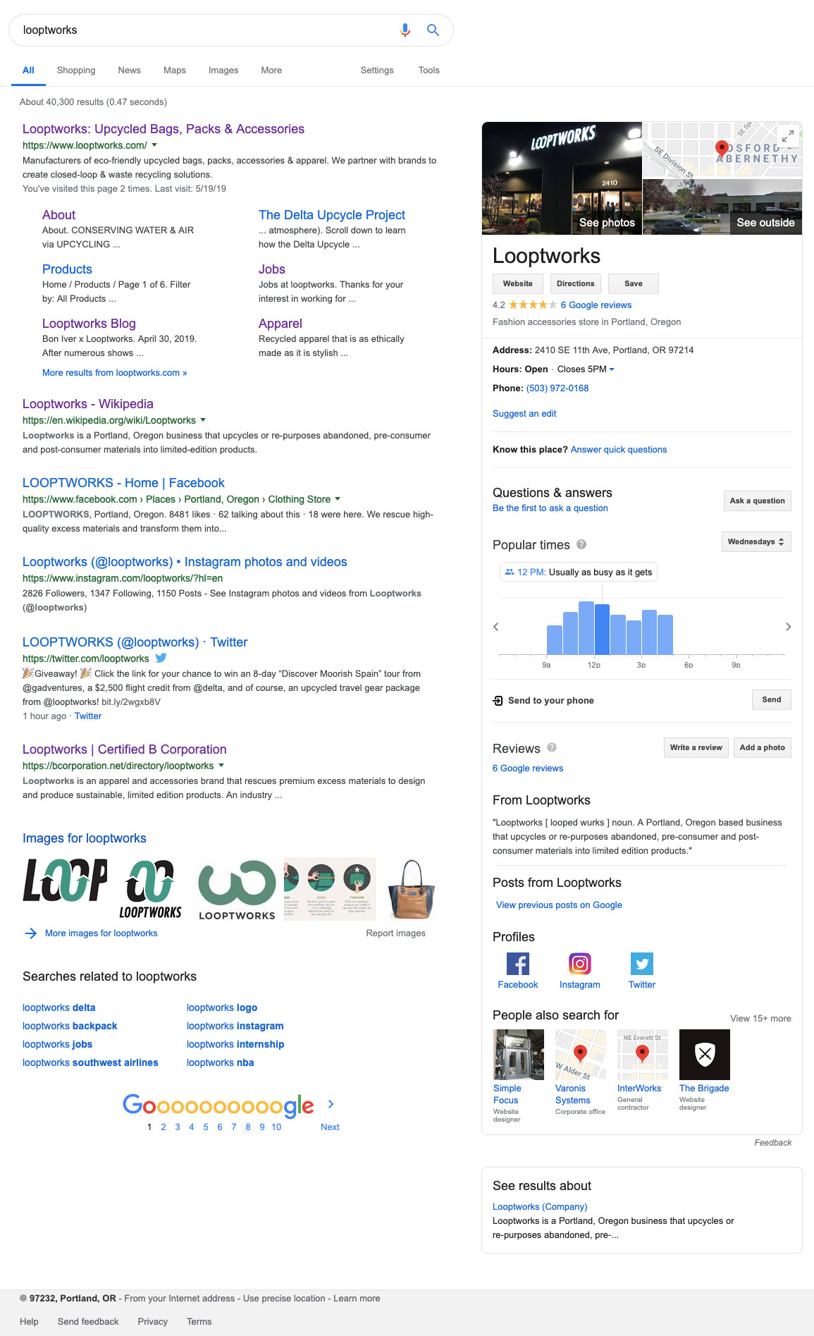 With that said, there are still opportunities to improve and solidify the brand results being displayed, as well as how Google understands how these various data sources are connected. Here are some quick-fixes that can optimize the brand SERP for Looptworks: